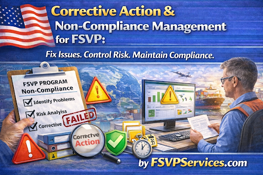 FSVP corrective action services, CAPA FSVP compliance, FDA corrective action requirements, FSMA non compliance management, supplier corrective action program FDA, root cause analysis food safety, deviation management FSVP, supplier suspension protocol FDA, food importer compliance corrective actions USA, FSVP consulting services, FDA inspection CAPA readiness, food safety corrective action system, supplier non compliance management, audit ready CAPA system USA
