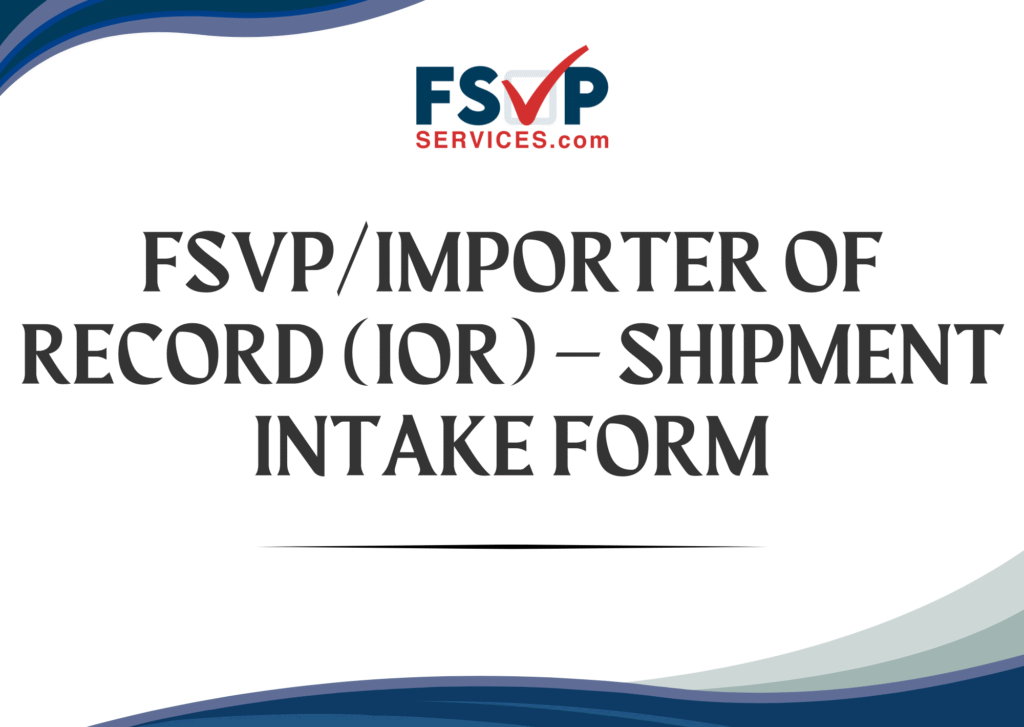 FSVP/IMPORTER OF RECORD (IOR) – SHIPMENT INTAKE FORM