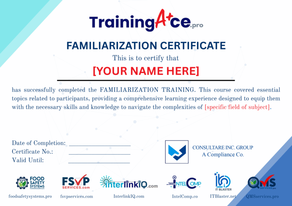 • FDA 21 CFR 117.4 – (Personnel Qualifications and Training)